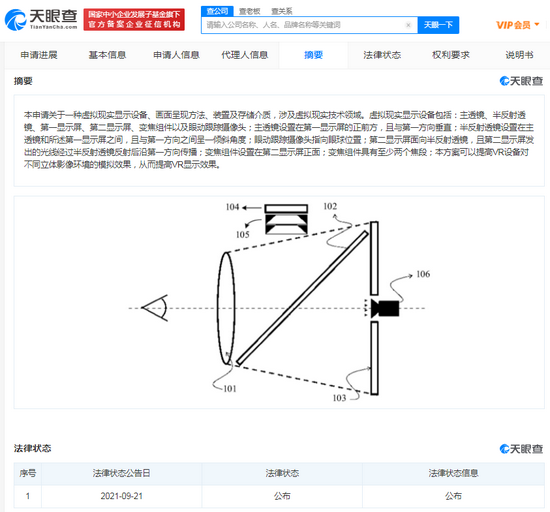 腾讯再次公开了一项今年六月申请的专利,内容为虚拟现实显示设备、画面呈现方法、装置以及存储介质。据专利摘要显示,该方案能提高 VR 设备对不同立体影像环境的模拟效果,从而大幅提升 VR 设备的画面显示效果。
